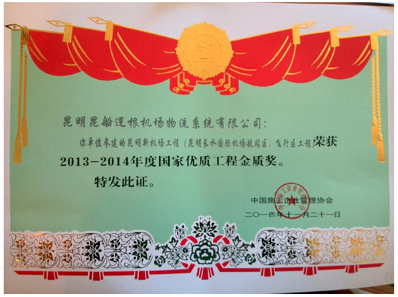 云南省建筑工程質(zhì)量優(yōu)良證書
